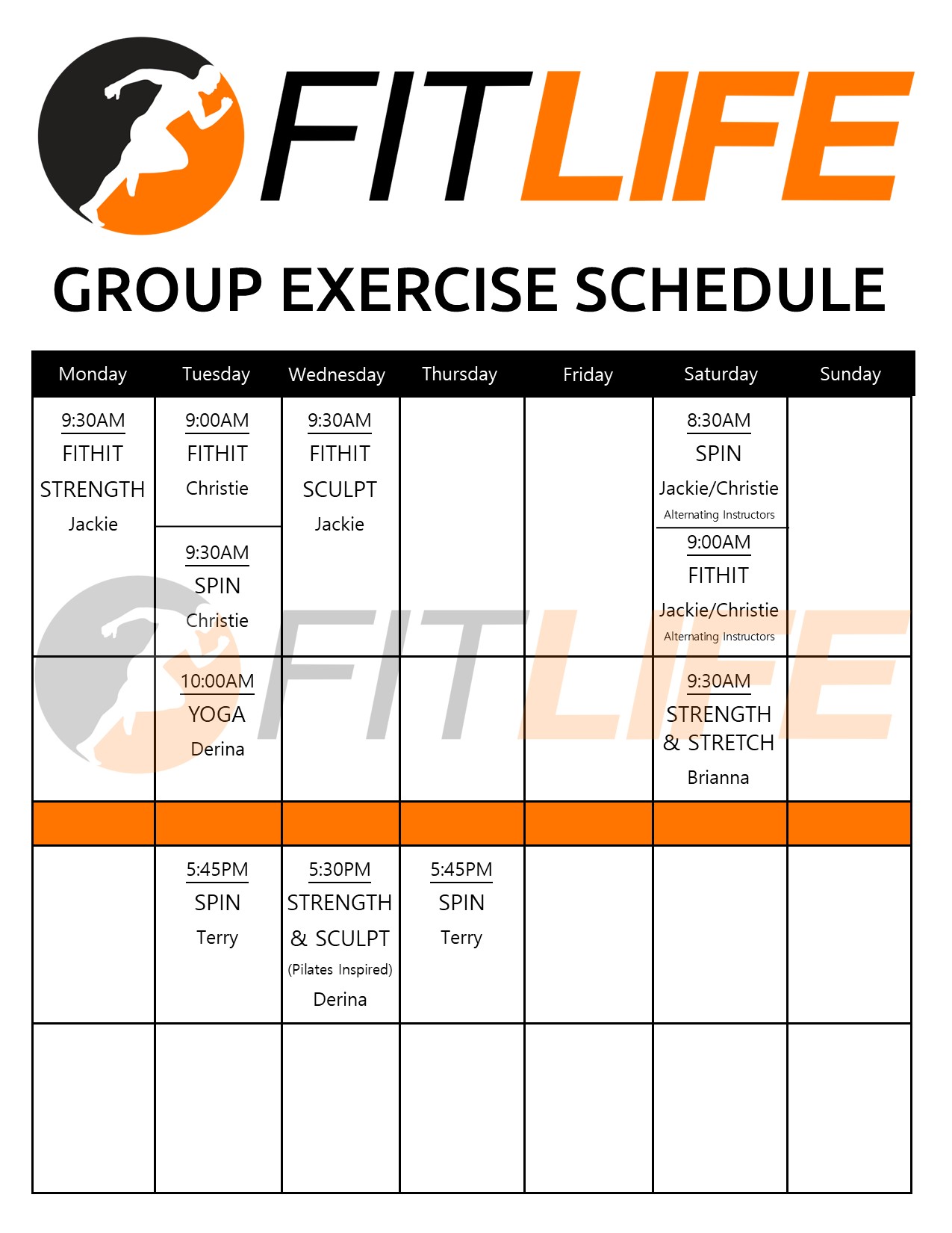 FitLife Group Fitness coaches create a heart pumping, personally engaging environment that will keep you looking forward to your next workout. Train with a friend or make new ones in yoga, spin, or specialized FitHit classes. Group training classes are offered at no additional cost with all of our NO CONTRACT memberships! Remember, we offer a FREE full week trial to try our gym as well as all the classes.